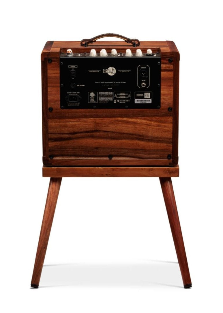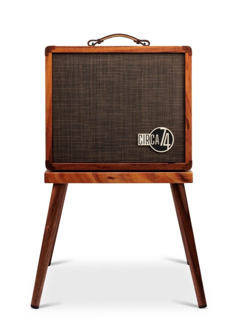 Bluetooth connectivity makes it easy to use the Circa 74 as a speaker for recorded music, while XLR and 1/4-inch line and 1/8-inch headphone outputs allow you to run your sound through PA systems and mixers. It all comes together in a beautifully crafted mahogany cabinet paired with a matching stand to elevate your sound and show off the amp's striking midcentury vibe.